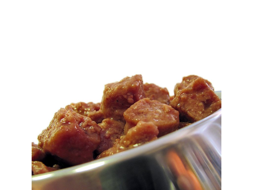 Složení: maso a výrobky živočišného původu (drůbeží), obiloviny a vedlejší výrobky z obilovin, karamel, zahušťovadlo, minerální látky, vitaminy. Neobsahuje konzervanty a barviva. Analytické složky: hrubý protein 7,0%, hrubý tuk 4,0%, hrubý popel 3,5%, hrubá vláknina 0,4%, vlhkost 80%.